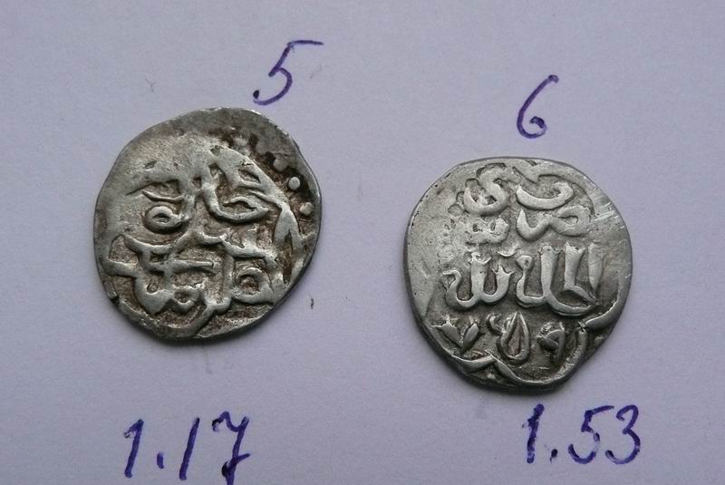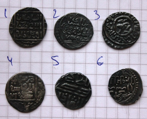QUOTE(MATRIX @ Nov 4 2012, 16:36) Прошу помощи в определении и оценки. 1 - Джучиды, Узбек, Сарай, тип 734, 737 гг.х. 2 - Джучиды, Джанибек, Сарай ал-Джадид, 745 г.х. 3 - Джучиды, Джанибек, Сарай ал-Джадид, год не уместился, тип 742-743 гг.х. 4 - Джучиды, Токта, Сарай ал-Махруса, 710 г.х. 5 - Джучиды, Джанибек, Сарай ал-Джадид, 747 г.х. 6 - Джучиды, Джанибек, Сарай ал-Джадид, 746 г.х. (с перевернутыми цифрами) |