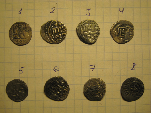 Добрый день, Уважаемые коллеги. Прошу Вас помочь определить и по возможности оценить данные дерхемы. Извините за соосность. Регион находки- Тульская обл, Одоевский р-н. Вес монетки №1-1.4гр. Вес монетки №2-1.1гр. Вес монетки №3-1.3гр. Заранее благодарен Всем ответившим. С ув.