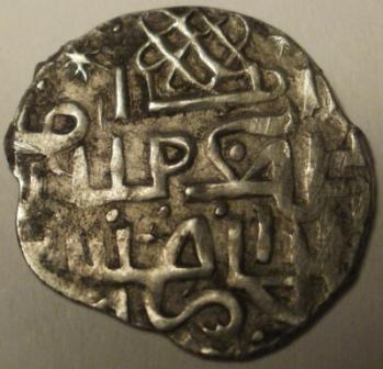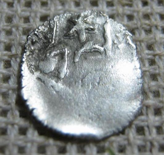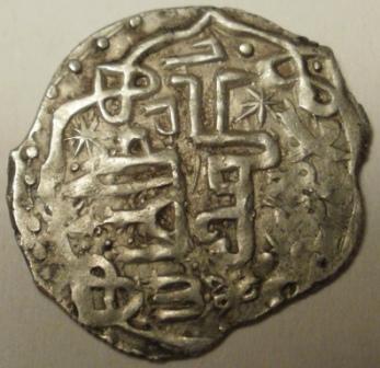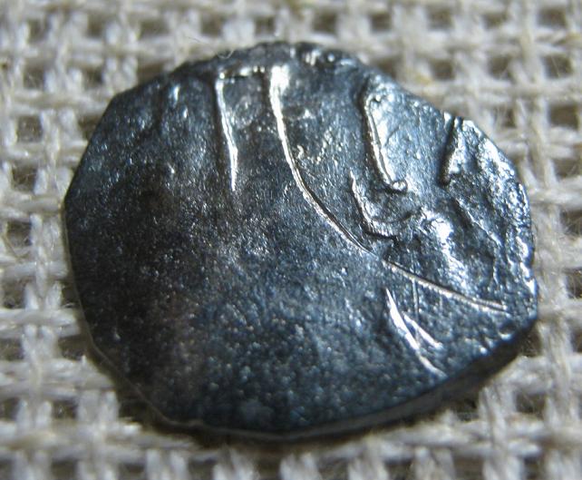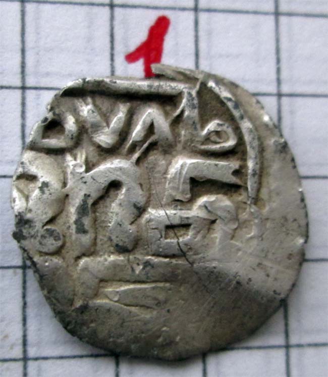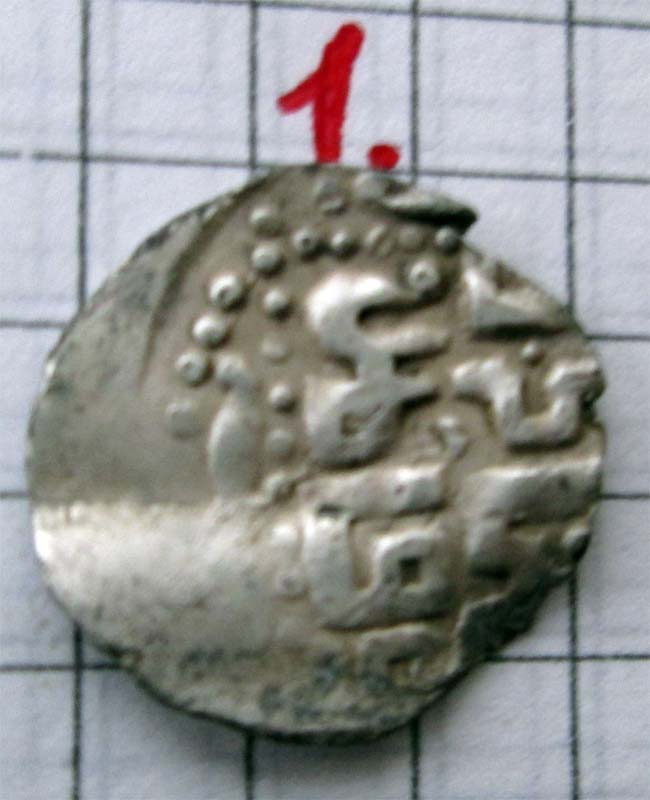 Монета №1. Левое фото. В секторе на 11 часов сверху вниз, половина тамги Ариг -- Буги. А.З. Сингатуллина, №10.