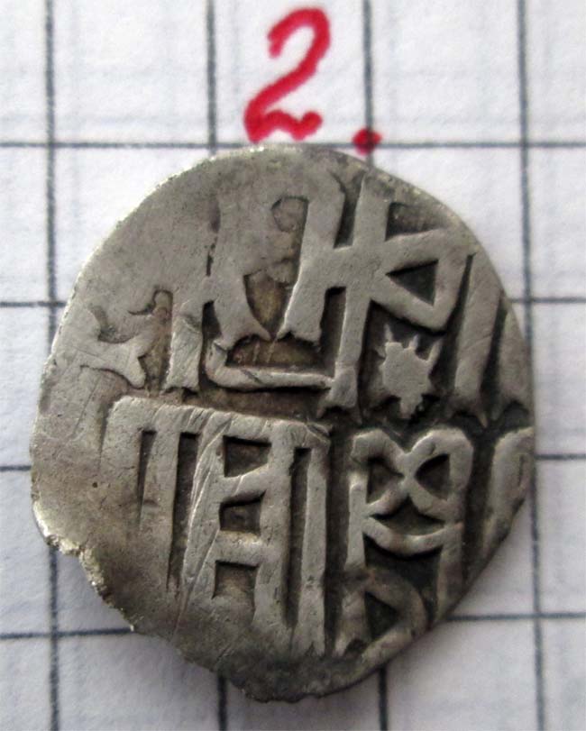 Я бы предположил чекан Булгара 13 века. №1 С остатками тамги Ариг -- Буги. А над №2 надо подумать. |