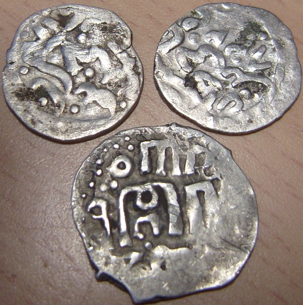 QUOTE(Скворцов @ Jan 27 2013, 17:33) Нижняя - подражание. Русское. Верхние - поздняя Орда, видно их плохо. Я прошу прощения! Увеличил фото.Очень интересует год чекана и Хан.С уважением...... Вложенные эскизы изображений -------------------- Призрачно всё в этом мире бушующем.