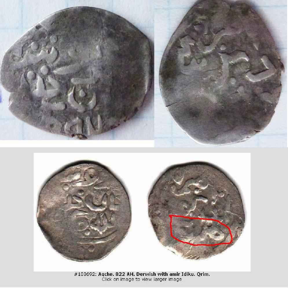 QUOTE(toreft @ Feb 23 2013, 13:58) 3 - Подражание Токтамышу нмв. Это Тохтамыш. Белед Азак. Насколько смог разглядеть по такому слабому фото. Такие монеты надо по одной крупно фотать. -------------------- Специализация: джучидские данги от Тюляка до Ибака.