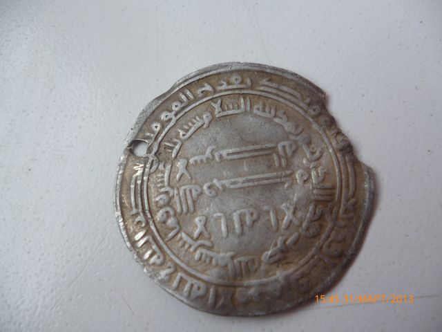 QUOTE(djdj @ Mar 31 2013, 16:21) Уважаемые спецы, пожалуиста определите и датируите данною монету заранее спасибо. Дирхем отчеканен во время правления халифа Аль Мамуна в городе Мадинат Ас Салам (современный Багдад) в 213 году хиджры. -------------------- Читаю куфические дирхемы и не только...
