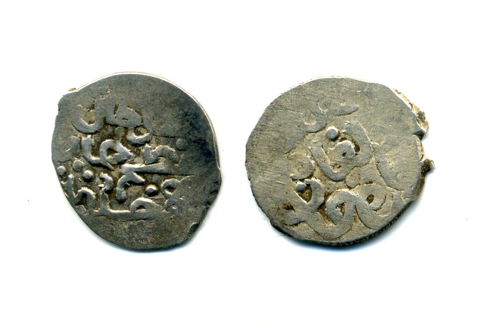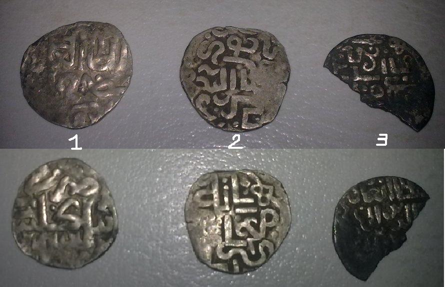 Внесу уточнения как монеты пронумерованы: 4. Анонимный пул чекана Мухши. Тип 756 г.х. 5. Анонимный пул чекана Ал Джадида. Этот тип с двумя точками и виньеткой. Не датирован. Чеканился в период правления хана Абдаллаха в 765 г.х. и возможно в 766 г.х. Набор монет характерен для Пензенской и Саратовской областей. |