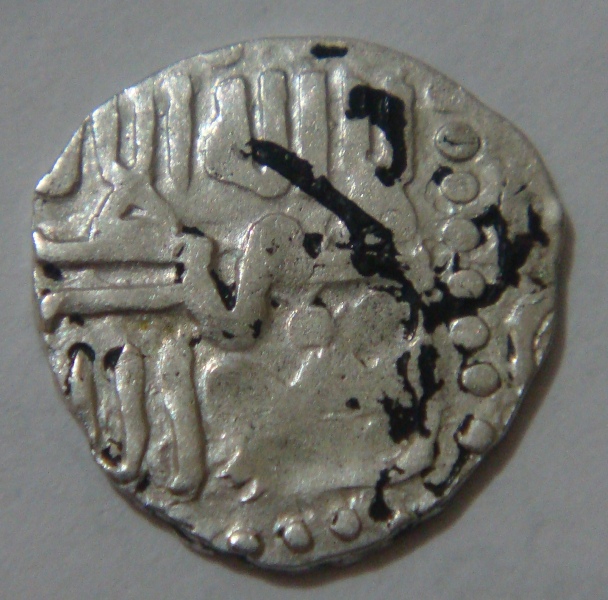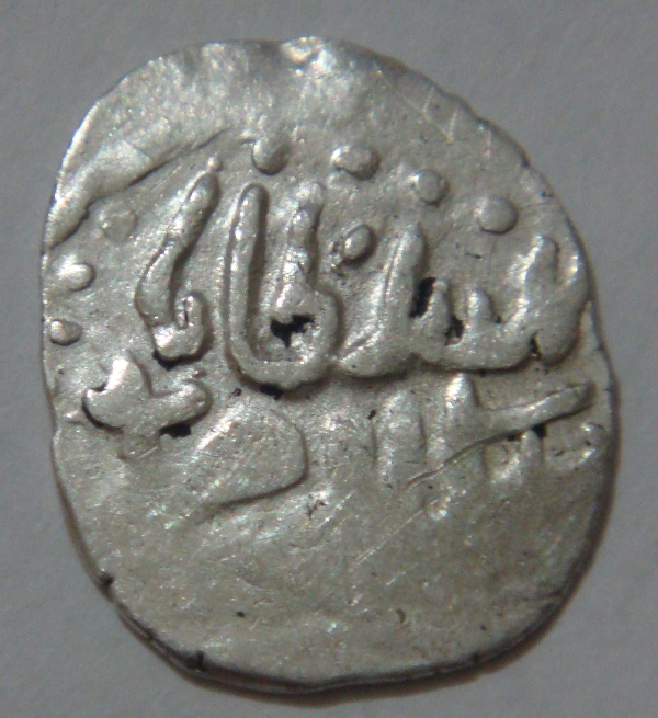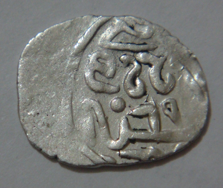 Что и требовалось доказать! На другой стороне животное влево, головой повернутой назад. Надчекан сделан на пуле Джанибека -- 2, чекана Маджара. Первую строку В.П. Лебедев читает "Адил". Вторая строка не прочитана.