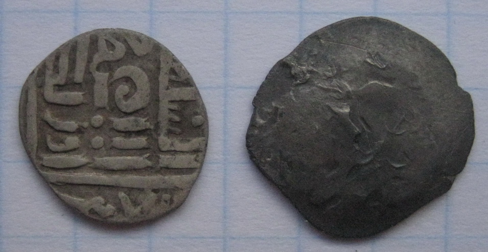 Прошу определить. Весов нет, так что без веса. Правую определил, Коломенский надчекан, уже не первая. Интересует левая. Если подражание, то можно поточнее, для дирхема маловата. Сопутка с этого места: Коломеские надчеканы, один с буквой Д, дирхем, полтина (слиток Новгородский) и разная мелочь, включая Советы и конину... Заранее благодарен!
