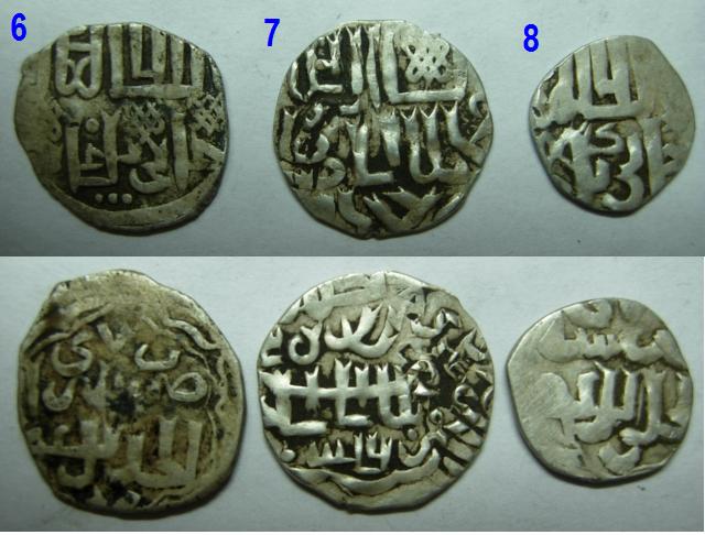 KosmosNN: А что Вы называете "Легковесные подражания нижегородского круга"?, если монеты №3 и №6, то это Узбек (722 г.х.), уменьшенный вес - следствие коррекции (обрезной), характерное для большинства дирхемов второй половины 14 века, связанное с экономическим упадком Золотой Орды, в период "замятни". (Как раз Ваша подборка дирхемов является хронологически наглядным примером того периода.)