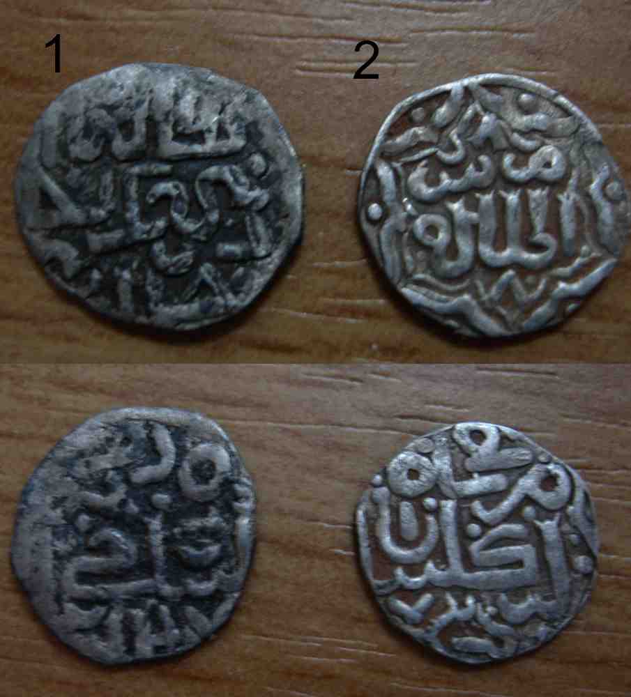 Альмахрусовский Узбек да резанки(обрезанны) под весовую норму 0,8-1,0 г, вот вам две монетки с весом 0,95 и диаметром около 13 мм, первая как раз подражание Бердибеку, Гулистан 762, вторая сами видите вообще две обратки Гулистан 760 и АЛЬ Джаз Джанибека кажись 746 г.х., причем обратите внимание на центровку и размеры штемпеля, монета явно не резанная.