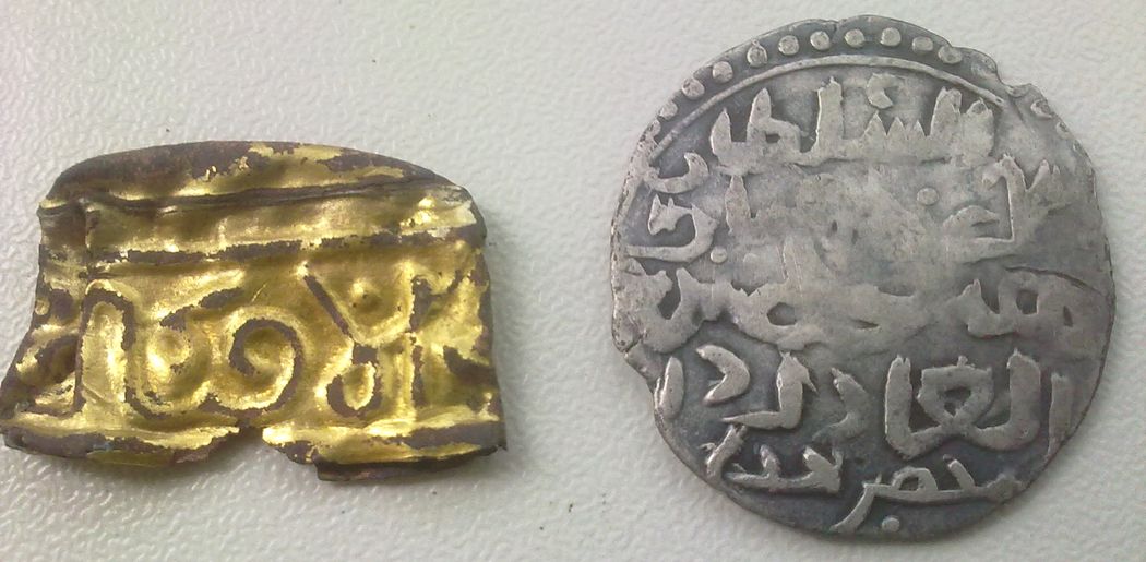 Помогите пожалуйста с определением дирхема. На той же поляне найдена эта позолоченная? штучка. Что это? Сам думаю, что это тыльник ножа. Вложенные эскизы изображений -------------------- Раз на раз не приходится............