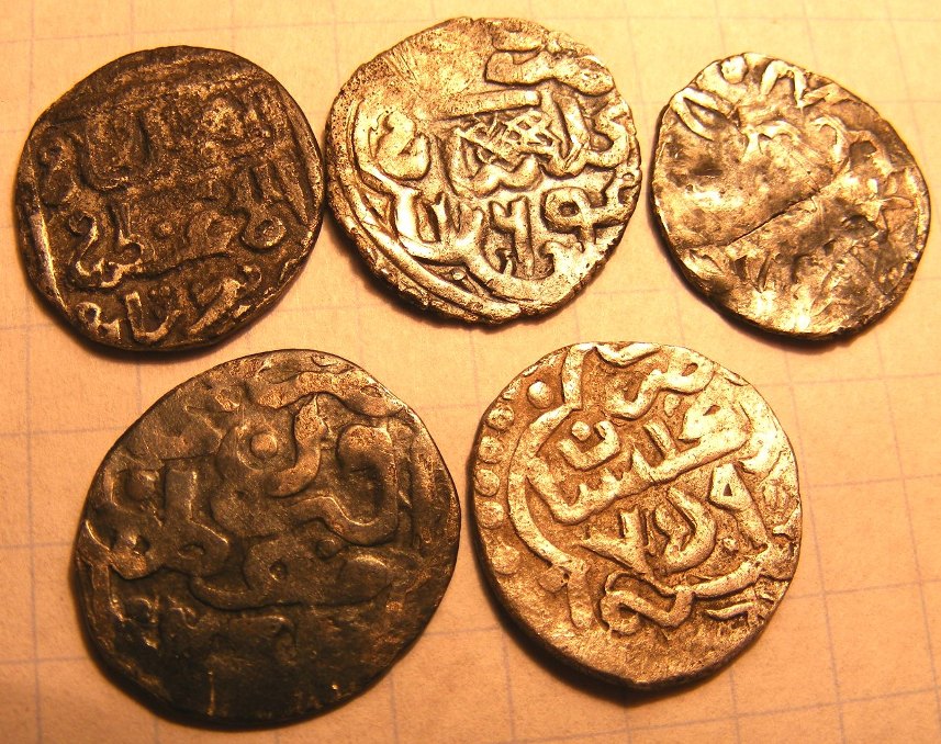 QUOTE(RDO @ Jun 12 2013, 23:02) Подскажите по дирхемам. 1) Узбек-хан, чекан Сарая, (30-тые гг., 14 в.). 2) Мюрид-хан, чекан Гюлистана, 764 г.х.. 3) 4) 5) Бердибек-хан, чекан Гюлистана, 759 г.х.. |
