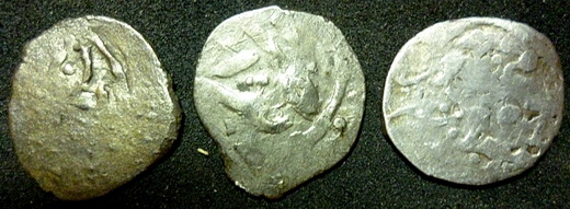 QUOTE(Вишар @ Jul 19 2013, 00:14) Уважаемые специалисты,если можно, определите и оцените пожалуйста вот такие монетки? Последний должен быть крымский Токтамыш. Фото мелкие и слабенькие по качеству, да в добавок монеты убиты в усмерть |