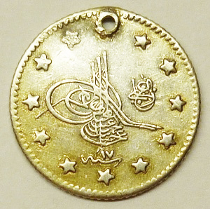 QUOTE(Скворцов @ Sep 17 2013, 22:41) Турция. Куруш (скорее всего - веса нет) султана Абдул Хамида Второго. 17-й год правления = 1891 г. от Р.Х. Спасибо большое! С уважением. -------------------- Карта СБ 4276***1822
