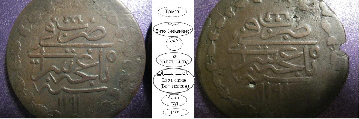 QUOTE(Родя @ Sep 25 2013, 21:10) Приветствую всех. Два кырмыза Шахин-Гирея, оба 1191гх. и 5-го года правления. В этом они одинаковы. Но в остальном тексте есть различия в виде точек. Прошу прочесть, кто читает тюрскую письменность, в чем смысловое различие? Не очень понятен Ваш вопрос. Вы имеете ввиду перевести, что написано? Если это, то у обоих все одинаково, выпускные сведения - чеканено в Багчисарае, год 1191; 5 |