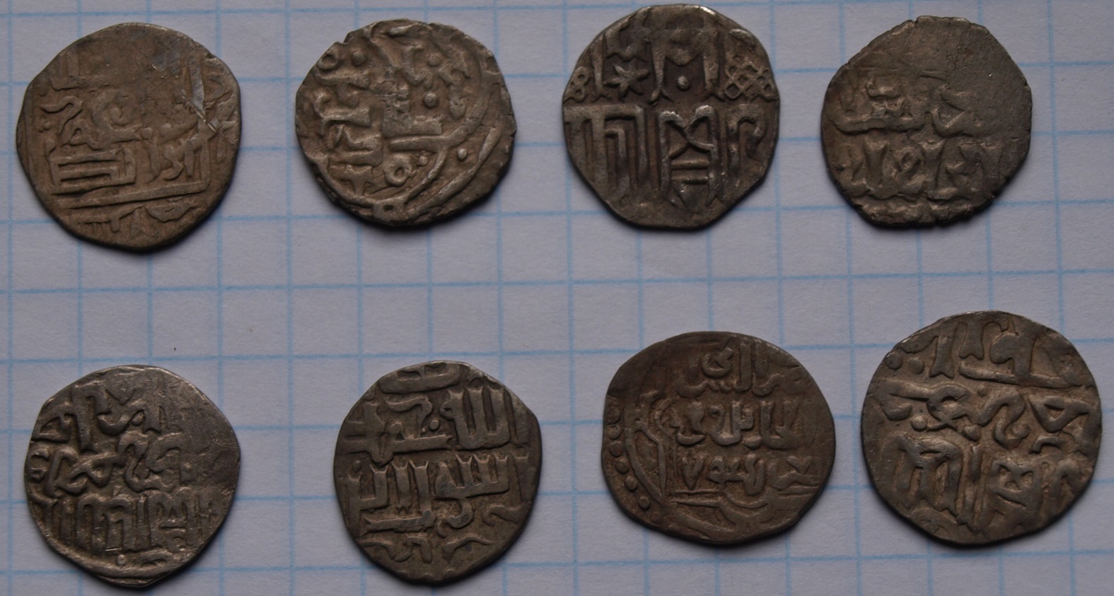 QUOTE(Дед Кладовед @ Oct 2 2013, 19:23) Доброго времени суток , многоуважаемые !!! Вот еще новые поступления . Прошу датировать и оценить . Спасибо . С уважением , Илья . Партия 1: Размер: 1-1,5см 2-1,6см 3-1,5см 4-1,5см 5-1,5см 6-1,2см 7-1,4см 8-1,4см 9-1,2см 10-1,2см 11-1,1см Вес: 1-1,3гр 2-1,2гр 3-1,3гр 4-1,1гр 5-1,1гр 6-0,8гр 7-1,3гр 8-1гр 9-0,9гр 10-0,7гр 11-0,9гр ![]() ![]() 1) Джанибек-хан, чекан Сарая ал-Джадид, 743 г.х.. 2 и 10) Узбек-хан, чекан Сарая, (714-718 гг.х.). 3; 4; 9 и 10) Джанибек-хан, чекан Гюлистана, (752-756 гг.х.). 5 и 8) Джанибек-хан, чекан Сарая ал-Джадид, (40-вые гг., 14 в.). 6) Джанибек-хан, чекан Сарая ал-Джадид, (743-745 гг.х.). 7) Узбек-хан, чекан Сарая, (734 г.х.). |