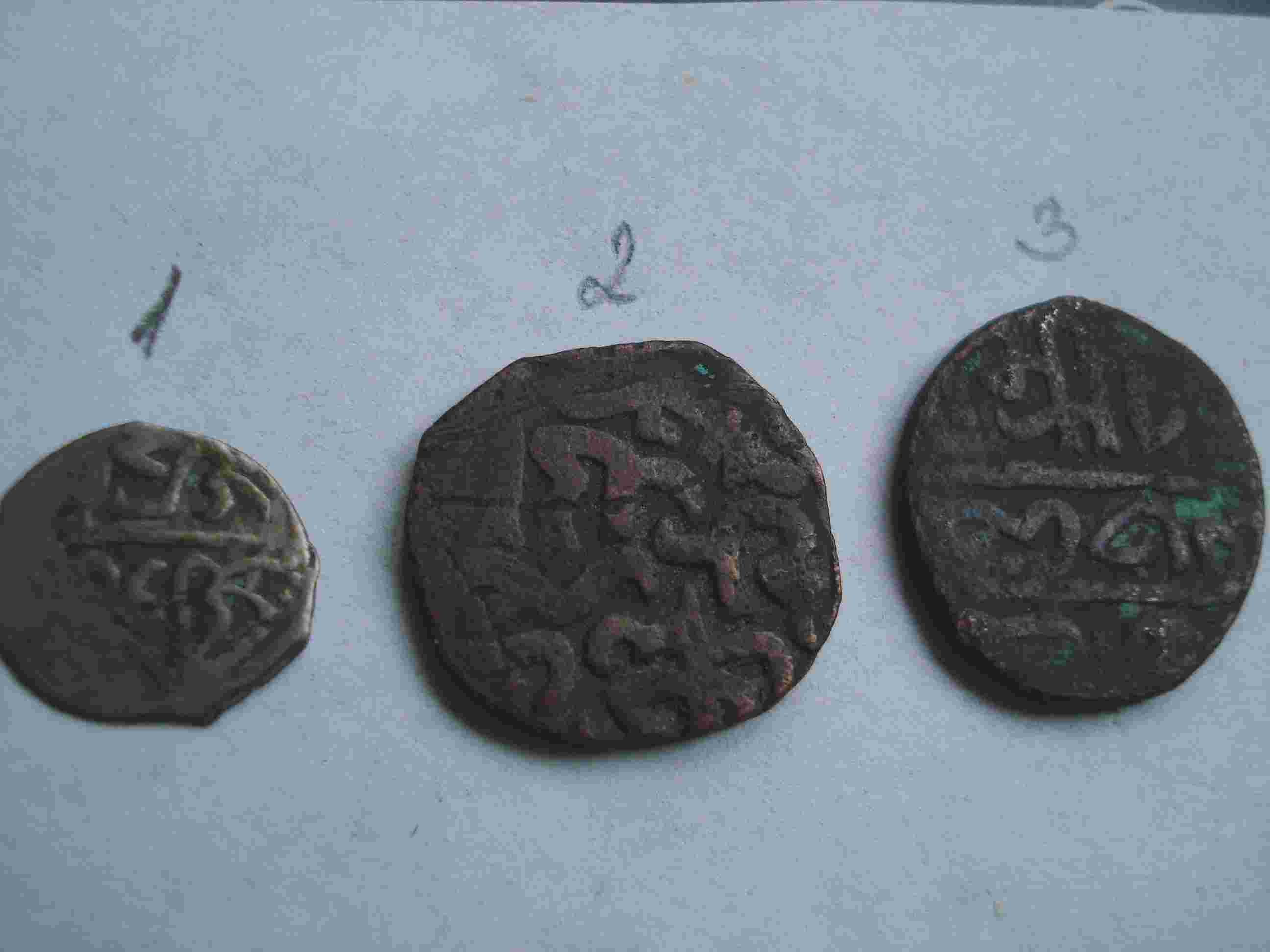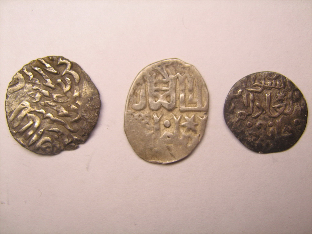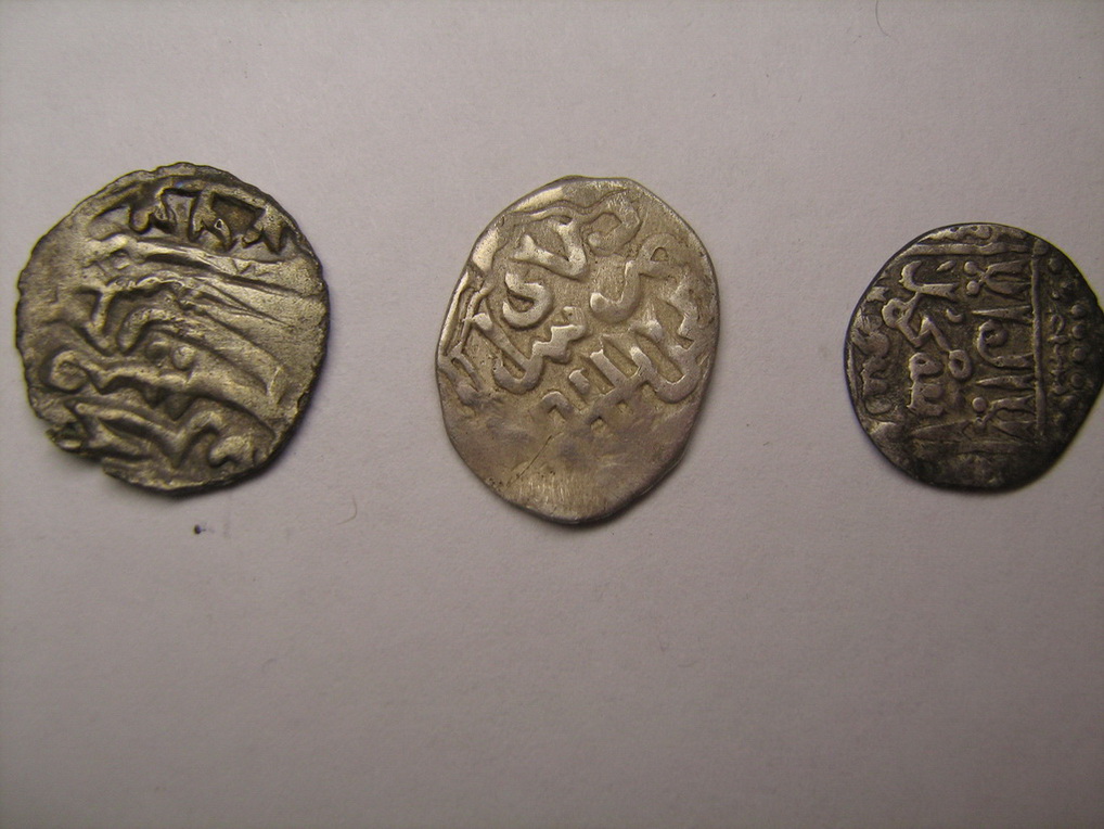 №2. Анонимный пул чекана Сарая ал Джадида 760 г.х. №3. Именной пул хана Хызра, чекан Сарая ал Джадида 762 г.х. В таком состоянии 15 -- 20 руб. шт. Серебро Крымских Гиреев. Коллеги подскажут. |