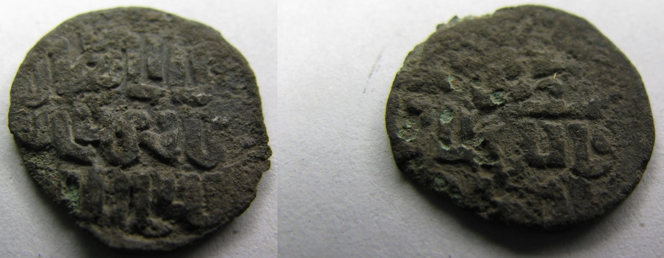 По такому состоянию, трудно сказать. Анонимный пул чекана Ал Джадида или Орду ал Джадида. Розетка с "личиком". Иногда личико называют тамгой Ибрагима. Начало 15 века. На пуле надчекан. Тип надчекана, пока, не узнаю. Может коллеги подскажут. |