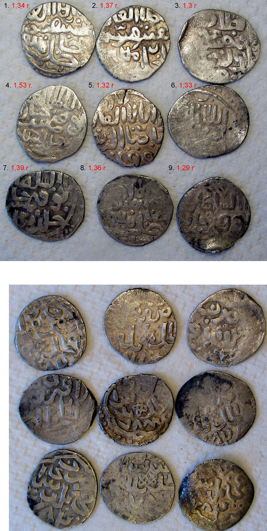 Интересные есть. 1. Поокское подражание. 10. Керим -- Берди (815 г.х.). Без указания места и даты чекана. Относят к чекану Сарая. Сообщение отредактировано ходжа: Dec 2 2013, 21:16 |