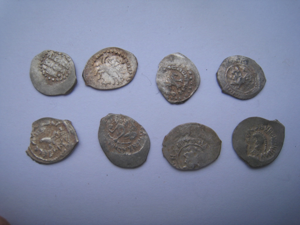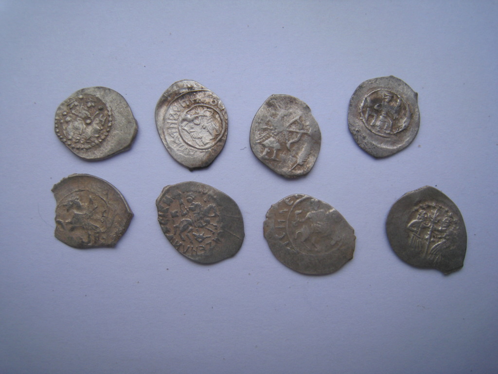 QUOTE(tork @ Dec 4 2013, 19:00) Я так понял 1-Ярославль, 2-тёмный, 3-????, 4-Верея 5-Тёмный(лучник),6-шемяка, 7 и 8 не видно Да? Не совсем, определениярасписаны согласно положению монеты на фото. По второму скану: первая строчка: Темный/Иван Андреевич, Можайск/Темный/Дмитрий Шемяка (?) вторая: Ярославль/Темный/ВД/Темный |