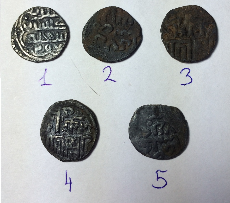 №1. С зеркальной датой 756, Гюлистановский данг Джанибека, встречается на много реже. №4. Джанибек. Сарай ал Джадида 750 г.х. |