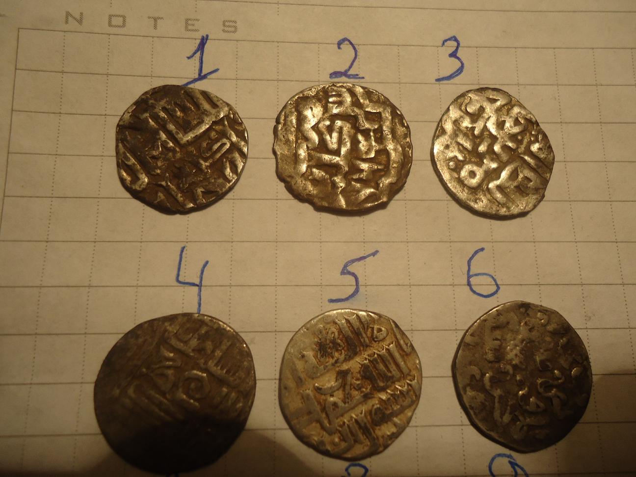 QUOTE(Pavel.pan @ May 7 2014, 17:31) Вечер добрый,будте любезны подскажите по дирхемам,чьи они,заранее спасибо 1 Джанибек, Гюлистан, 756 г.х. 2 Мюрид, Гюлистан, 764 г.х. 3 Мюрид, Гюлистан, 763 г.х. 4,5 Узбек, Сарай 6 Джанибек, Сарай ал- Джедида |