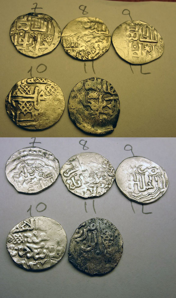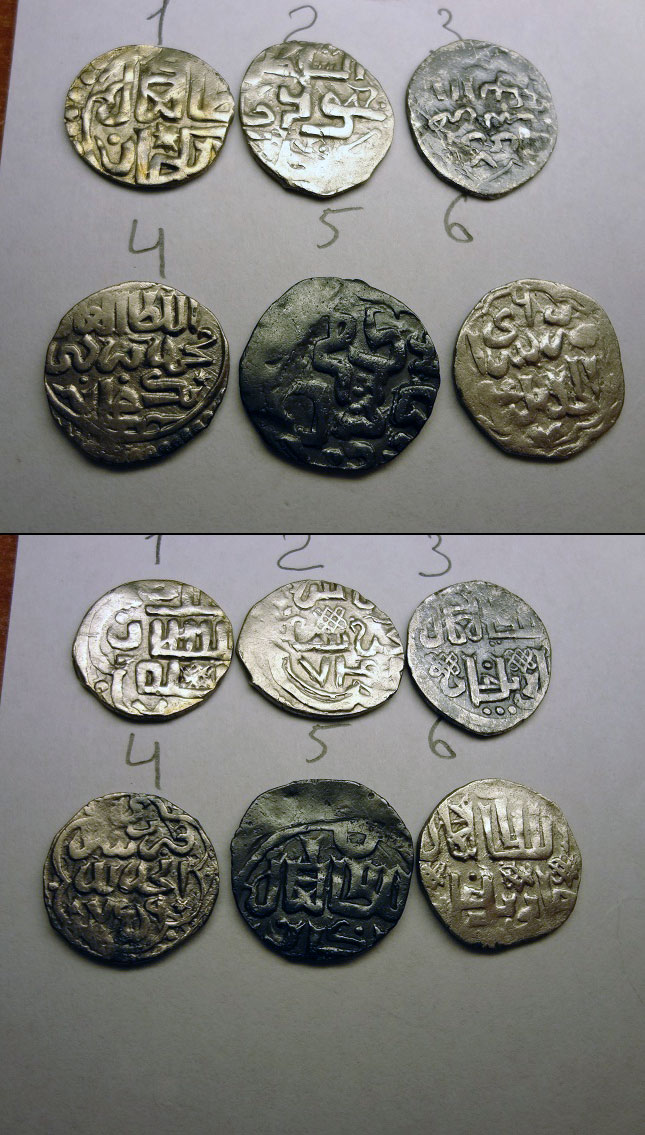 QUOTE(lhfrjyffn @ May 17 2014, 22:27) Уважаемые форумчане, прошу определить , и по возможности оценить, данные дирхемы. 1 Джанибек Гюлистан 75? 2 Джанибек Сарай Махруса 749 3 Джанибек Сарай ал Джадид 747 4 Бердибек Сарай ал Джадид 759 5 Джанибек Гюлистан 754 6 Джанибек Сарай ал Джадид 746 |