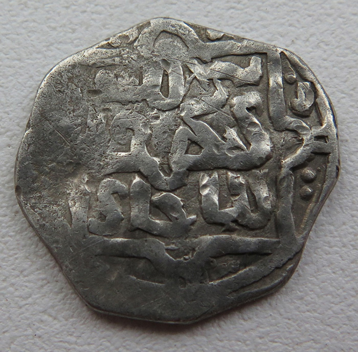 Подражание под Джучидский данг, наверное под Джанибека. Трудно сказать когда отчеканено, Вы не указали вес, размеры и место находки |