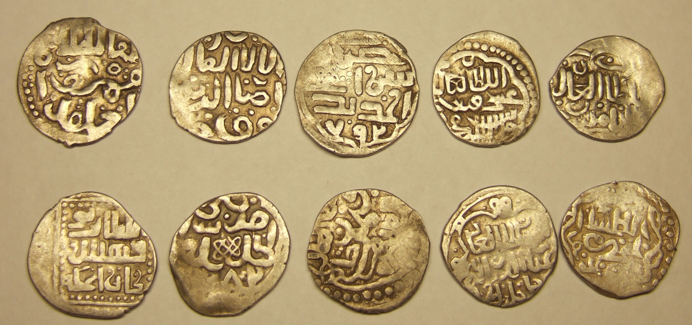 QUOTE(dimidov @ May 28 2010, 01:23) Датировка, цена если можно по горизонтали 1) Поокское подражание монете Темира-Кутлу, №12 по Волкову. 2) Тохтамыш, Сарай ал-Джадид, 78(?) 3) Тохтамыш, Сарай ал-Джадид, 792 4) Джанибек, Сарай ал-Джадид, 743 5) Тохтамыш, Орду ал-Муаззам, ? 6) Тохтамыш, Сарай ал-Джадид, 792 7) Тохтамыш, Сарай ал-Джадид, 782 8) Тохтамыш, Орду ал-Муаззам, ? (тип 791) 9) Мухаммед, Орду, ? 10) Подражание крымской монете Тохтамыша. В каком районе найдено? И можно ли взвесить? |