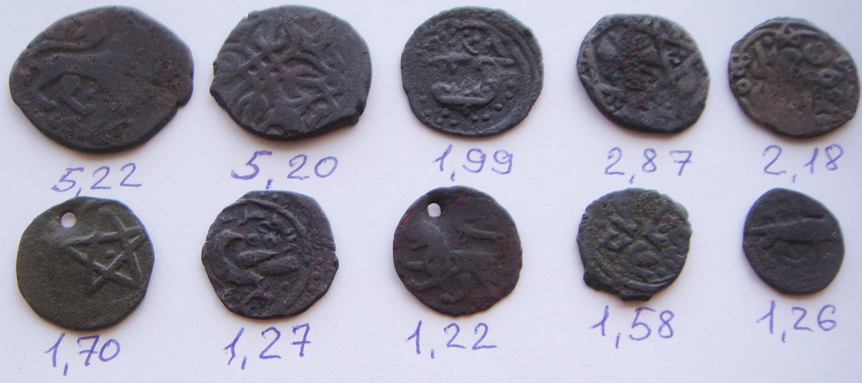 QUOTE(матурым @ Aug 17 2014, 16:16) доброго времени суток,уважаемые форумчане. помогите определить и оценить эти монетки. район находки-центральный Татарстан. половина отчеканена из высокопробного серебра,половина,судя по серому цвету,из низкопробного. весов,увы нет. если есть необходимость напишите какие данги сфотографировать отдельно. с уважением. З.О. 15в. Булгар |