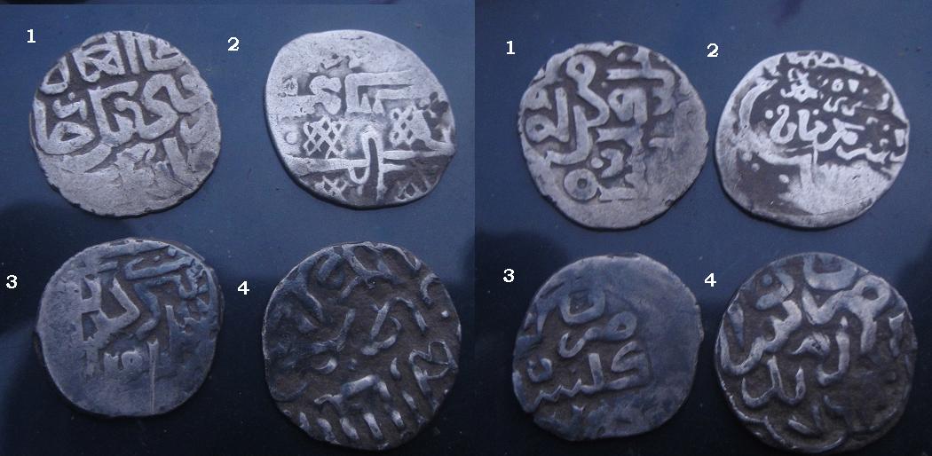 QUOTE(zvyaga @ Oct 24 2014, 07:13) Помогите с определением, пожалуйста 1) Бердибек-хан, чекан Гюлистана, 760 г.х.. 2) Узбек-хан, чекан Сарая, (739-740 гг.х.). 3) Бердибек-хан, чекан Гюлистана, 759 г.х.. 4) Хызр-хан, чекан Сарая ал-Джадид, (761-762 гг.х.). |