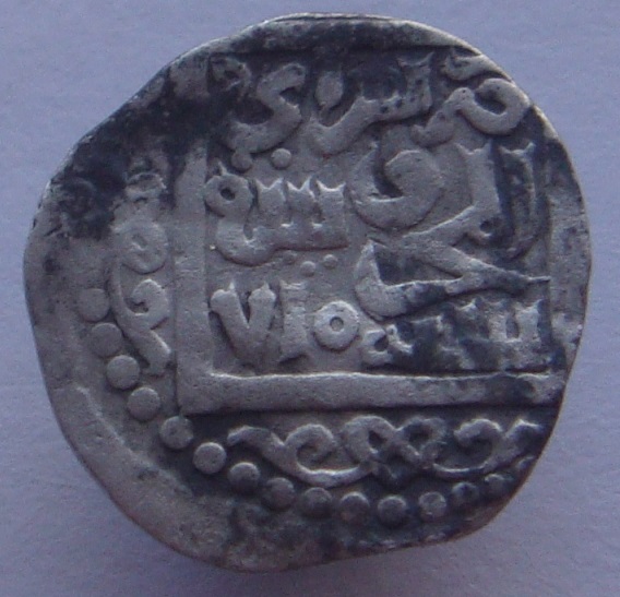 Именной пул Токтамыша. Чеканился на Северном Кавказе в 790-х г.х. На оборотке смысла не нашел. Набор прямых линий ( иногда сходящихся в решетку) и точек. Пока, зафиксирован мной разброс веса, этого типа, от 1,2 до 2,3 гр. |