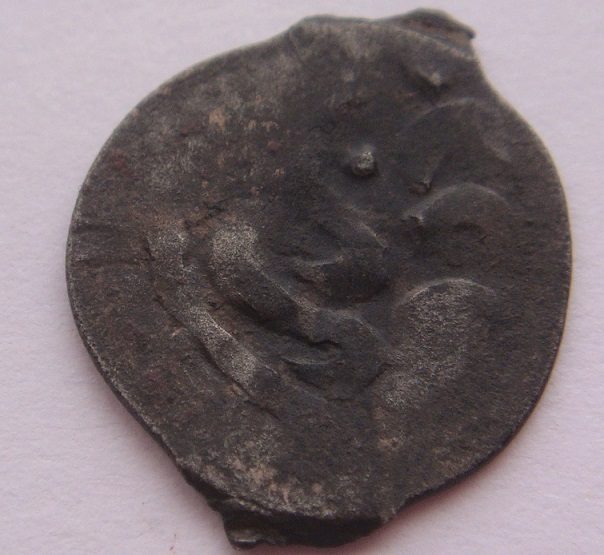 Доброго всем дня. Уважаемые, подскажите. Чья и период. Вес 0,61г. металл похож на бронзу, или медь луженная была.