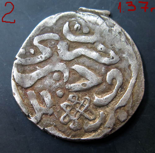 QUOTE(Dertebgd @ Jan 12 2015, 05:56) Тимур-Ходжа 762? Вес 1.51г Бердибек-хан, чекан Гюлистана, 759 г.х.. |