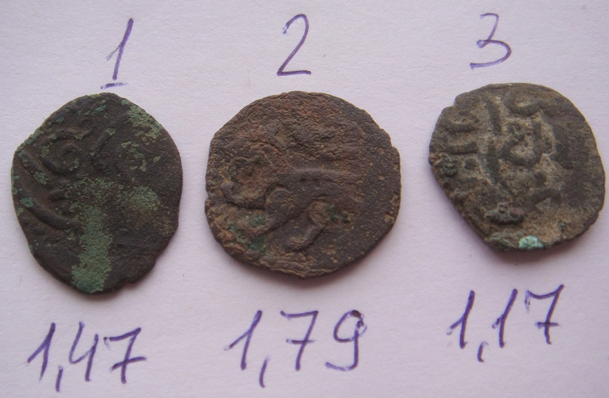1. Анонимный недатированный пул чекана Орды. С тамгой. Не частый. Конец 14 века. 2. Анонимный недатированный пул чекана Сарая. Барс, с анимационным изображением на хвосте. "Кутлуг булсун. Янги пул". 3. Анонимный недатированный пул чекана Сарая ал Джадида. "Двухглавый орел". |