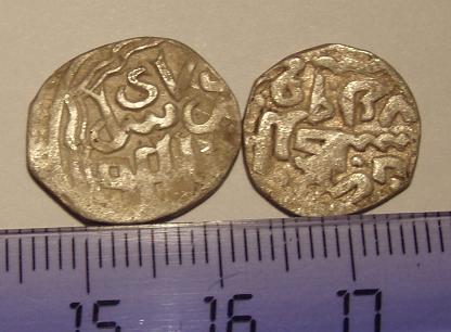 Джанибек - 747 года чеканки, Бердибек - 759 ГХ. Стоить они много не будут, так как затёрты и не в сохране. Где найдены? (Примерно, мне с точностью до метра не надо) |
