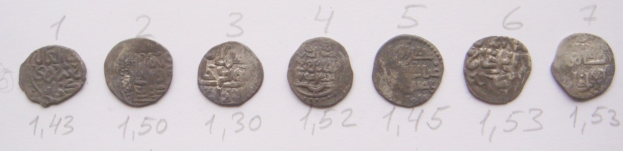 QUOTE(subedei @ Mar 10 2015, 08:11) 1) Бердибек-хан, чекан Сарая ал-Джадид, 759 г.х.. 2) ? 3) Хызр-хан, чекан сарая ал-Джадид. 761 г.х..з 4) Бердибек-хан. чекан Гюлистана, 759 г.х.. 5) Навруз-хан. чекан Гюлистана, 761 г.х.. 6) Ордумелик, чекан Сарая ал-джадид, 762 г.х.. 2 - Джанибек, Сарай ал-Джедида |