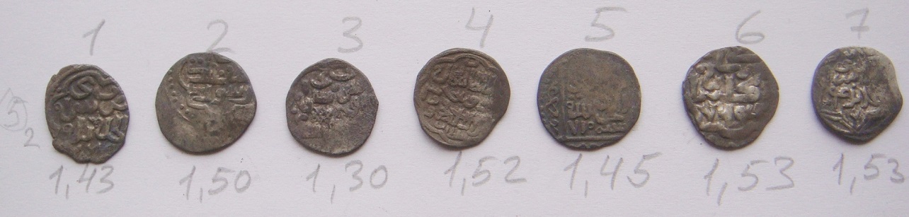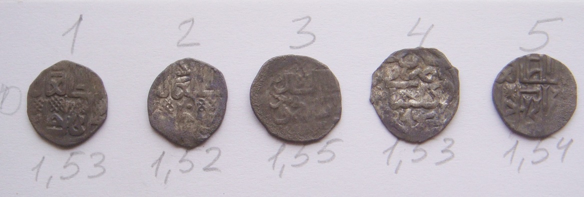 QUOTE(zababart @ Mar 10 2015, 14:20) 1 Хызр, Гюлистан, 761 г.х. 2 Хызр, Сарай ал-Джедида, 761 г.х. 3,5 Бердибек, Гюлистан, 753 г.х. 4 Джанибек, Сарай ал-Джедида, 743 г.х. 6 Кильдибек, Азак, 763 г.х. 7 Бердибек, Сарай ал-Джедида, 759 г.х. 8 Мюрид ,Гюлистан, 764 г.х. |