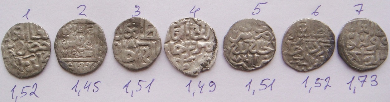 QUOTE(Сергио @ Mar 18 2015, 11:33) 1) Хызр-хан, чекан Гюлистана, 761 г.х.. 2) Токта-хан, чекан Сарая ал-Махруса, 710 г.х.. 3) Джанибек-хан, чекан Гюлистана, 753 г.х.. 4) Мюрид-хан, чекан Гюлистана. 763 г.х.. 5) Хызр-хан, чекан Сарая ал-Джадид. 761 г.х.. 6) Бердибек-хан, чекан Гюлистана. 759 г.х.. 7) Кюльпа-хан, чекан Гюлистана, 760 г.х.. |