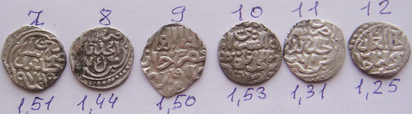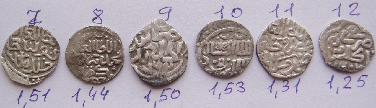 QUOTE(Сергио @ Apr 1 2015, 10:12) 1) Узбек-хан, чекан Сарая, (714-718 гг.х.). 2; 4 и 5) Навруз-хан, чекан Гюлистана, 761 г.х.. 3) Хызр-хан, чекан Гюлистана. 762 г.х.. 6) Хызр-хан, чекан Сарая ал-Джадид, (761-762 гг.х.). 7) Кульпа-хан, чекан Сарая ал-Джадид, 760 г.х.. 8) Бердибек-хан, чекан Сарая ал-Джадид, 759 г.х.. 9) Хызр-хан, чекан Сарая ал-Джадид, 762 г.х.. 10) Джанибек-хан, чекан Сарая ал-Джадид, 745 г.х.. 11) Хызр-хан, чекан Сарая ал-Джадид, 761 г.х.. 12) Кульпа-хан, чекан Гюлистана, 760 г.х.. Сообщение отредактировано subedei: Apr 1 2015, 09:33 |