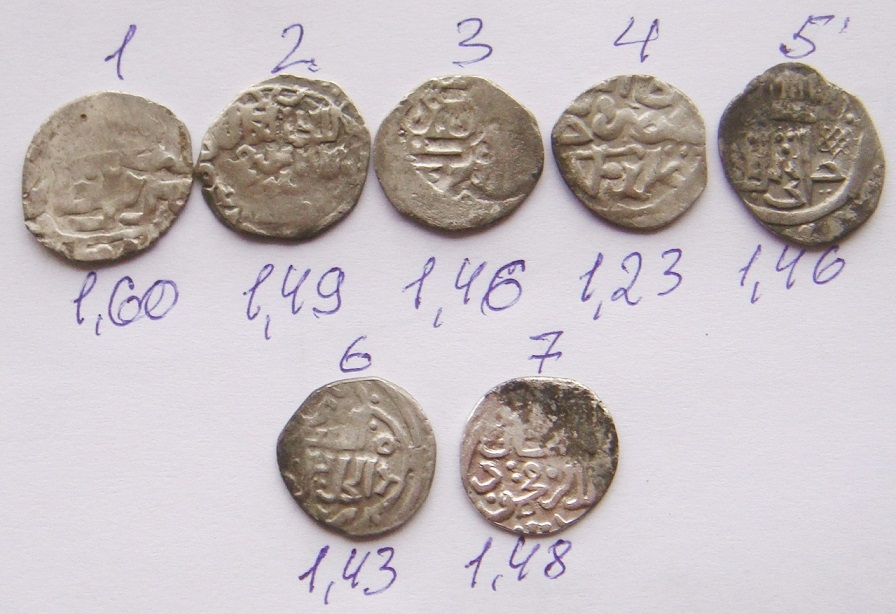 QUOTE(Сергио @ Apr 4 2015, 16:26) 1) Мюрид, чекан Гюлистана, 764 г.х.. 2) Джанибек, чекан Сарая ал-Джадид. (год ?). 3) Бердибек, чекан Гюлистана, 759 г.х. (брактиат). 4) Хызр, чекан Гюлистана, 761 г.х.. 5) Джанибек, 6 и 7) Джанибек-хан, чекан Сарая ал-Джадид, 745 г.х.. |