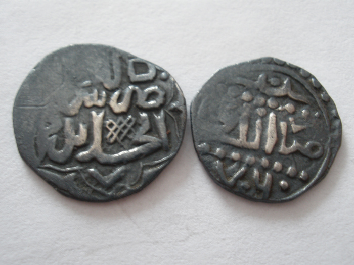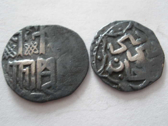Не изучена тема. Боюсь, что и материал не подбирался. В качестве "слива" идеи (вдруг кто-нибудь займётся): появление таких мулов дангов Гийас ад-Дин Мухммада связано с разгоромом лагеря Мамая в Куликовскую битву. Штемпели попали в руки победившей стороны и использовались для чеканки русских подражаний.(предположение А.Л. Пономарёва) Близкая ситуация повторилась и во время походов Тимура. (это уже моё |