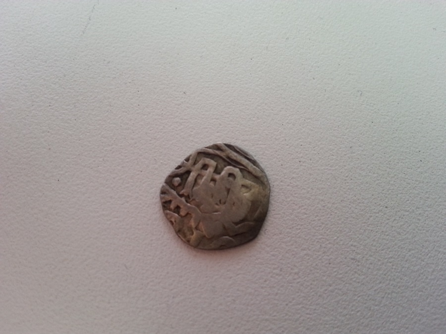 Фракция дирхема чекана Сарая 680-х гг.х. Не понятно, утеря части монеты или такая заготовка попала под чекан? |