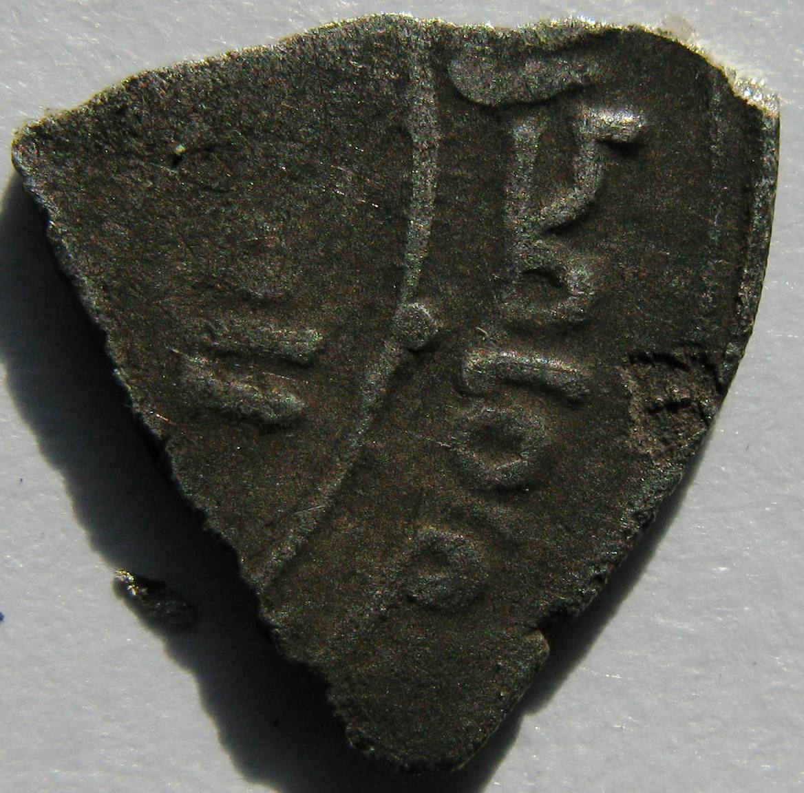 На фоне горстей дирхемов моя 1/16 часть выглядит более чем скромно. Тем не менее, позволю нескромно попросить специалистов попытаться помочь атрибутировать эту монету, ходившую на Руси.