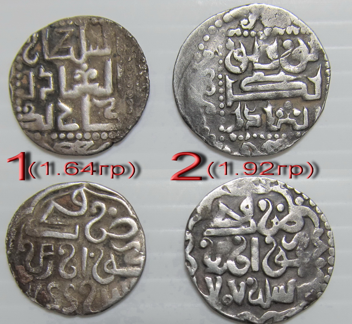 QUOTE(samura @ Sep 9 2015, 15:54) Доброго дня ,Уважаемые. Подскажите пожалуйста по этим монеткам(если конечно что то видно) Фото только такое,уж извините. 1) Мюрид-хан, чекан Гюлистана, 763 г.х.. 2) Азиз-Шейх-хан, чекан Гюлистана, (767 ?). 3) Джанибек-хан, чекан сарая ал-Джадид, 747 г.х.. 4) Джанибек-хан, чекан сарая ал-Джадид, 748 г.х.. |