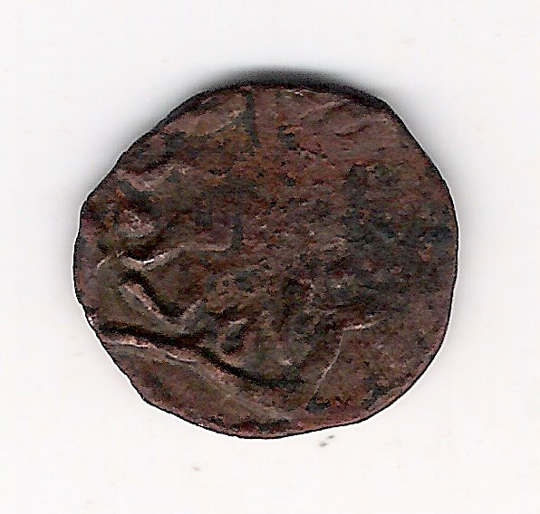 Про медь я понимаю не очень, по краям, по-моему, Сарайская "Розетка" Джанибека, год виден, но мелковато, не разглядел. Считается, что таких медных пулов за один серебряный денг давали 16 штук. В центре - барс (он же лев) и солнце. По-моему, Узбек. |
