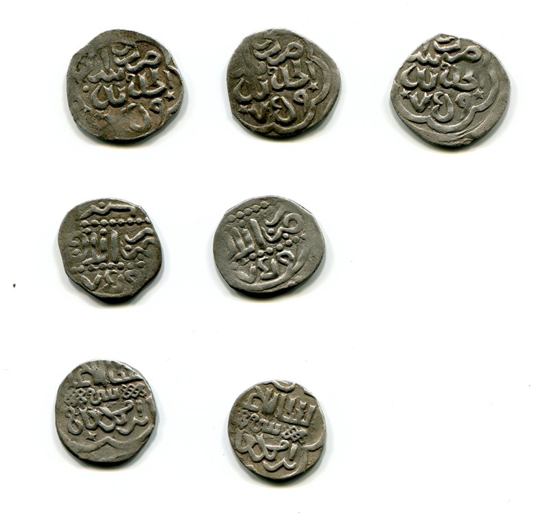 QUOTE(batson @ Feb 14 2016, 17:42) 1. Узбек, чекан Сарая, тип кон. 730-нач. 740-х гг. х. Ок. 200р. 2. Хызр, чекан белед Гюлистана 761 г.х. Ок. 250р. 3. Подражание. От 400р. 4. Абдаллах, чекан Орду 770 г.х. с надчеканом "Г". От. 1500р. |