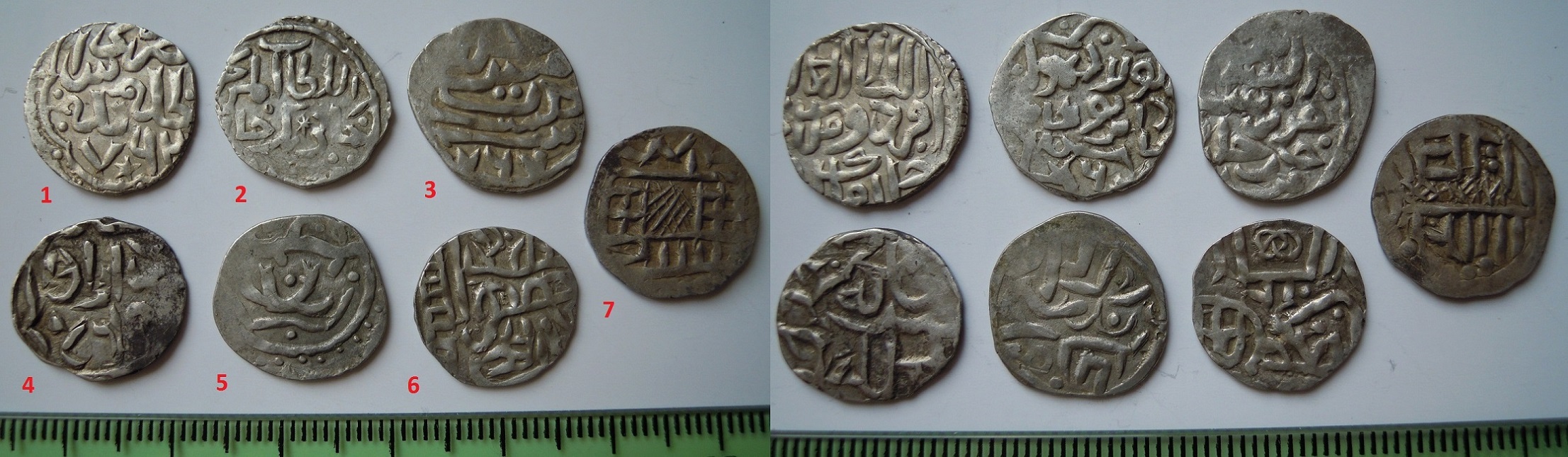 QUOTE(poteriashka @ Feb 27 2016, 17:13) Прошу помощи в определении дирхемов и подражаний. Заранее спасибо! 1. 1.55г 2. 1.36г 3. 1.53г 4. 1.34г 5. 1.37г 6. 1.10г 7. 1.62г Классные монеты, первые 4 - данги, остальные - подражания. -------------------- Специализация: джучидские данги от Тюляка до Ибака.