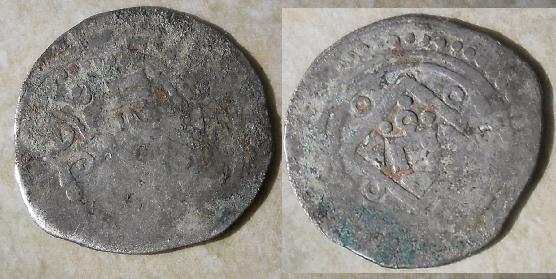 Создаю тему здесь, т.к. в разделе чешуи и монет конца 14 века она прошла не замеченой. Настолько редкая? Подскажите пожалуйста по монете и возможной ее стоимости. Проходов подобной не нашел. Атрибутировали как - Анонимная монета Стародубского княжества, ок. 1375 - 1385 гг. и предполагают на ней тамгу Дмитрия Корибута Ольгердовича. Помогите пожалуйста развеять сомнения. Заранее благодарю Вас за глубокие знания, проявленный интерес и оказанную посильную помощь. Регион находки Черниговская область. Серебро. Вес плавает от: 1.2 - 1,3 гр. Вложенные эскизы изображений |