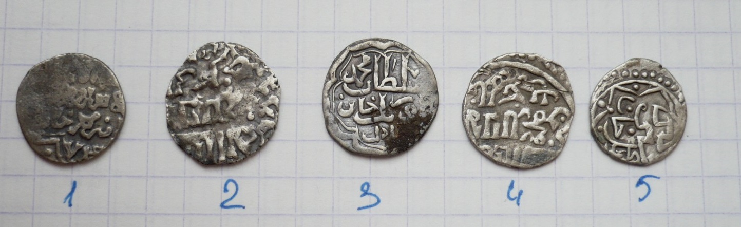 QUOTE(PIKUR @ Apr 23 2016, 12:33) Добрый день, прошу определить и оценить монеты. Курск.обл. 1--1,51гр. 2--1,51гр. 3--1,48гр. 4--1,40гр. 5--1,26гр. Спасибо Данги 1. Узбек. 2. Джанибек. 3. Узбек. 4. Джанибек. Год попал, что делает монету интересной. 5. Бердибек. 1 - 3 - до 5 долларов. 4 и 5 - около 5. -------------------- Специализация: джучидские данги от Тюляка до Ибака.