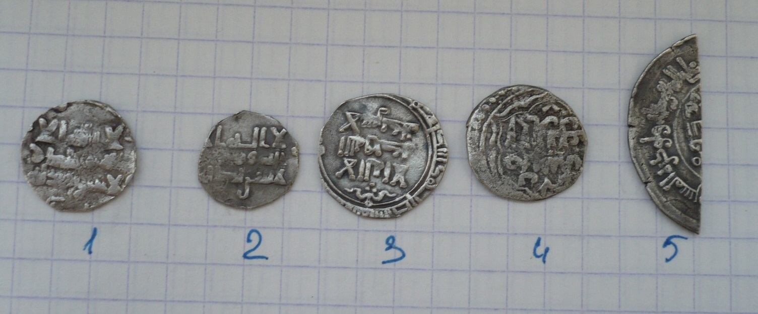 QUOTE(PIKUR @ May 1 2016, 20:52) Добрый день, прошу подсказать. Спасибо. 1 - Саманиды, Нух б. Наср (331-343 гг.х.), выпускные обрезаны, по типу - Самарканд 2 - Саманиды, Ахмад б. Исма'ил (295-301 гг.х.), выпускные обрезаны 3 - Саманиды, Наср б. Ахмад, выпускные обрезаны, 322-329 гг.х. 4 - Джучиды, Джанибек, Сарай ал-Джадид, 747 г.х. 5 - Саманиды, Нух б. Наср, место обрезано, 333 г.х. Место находки в личку напишите, пожалуйста, по виду - Курская область. -------------------- Клады монет важны для изучения ден. обращения. Обращайтесь к специалистам для их научной фиксации!