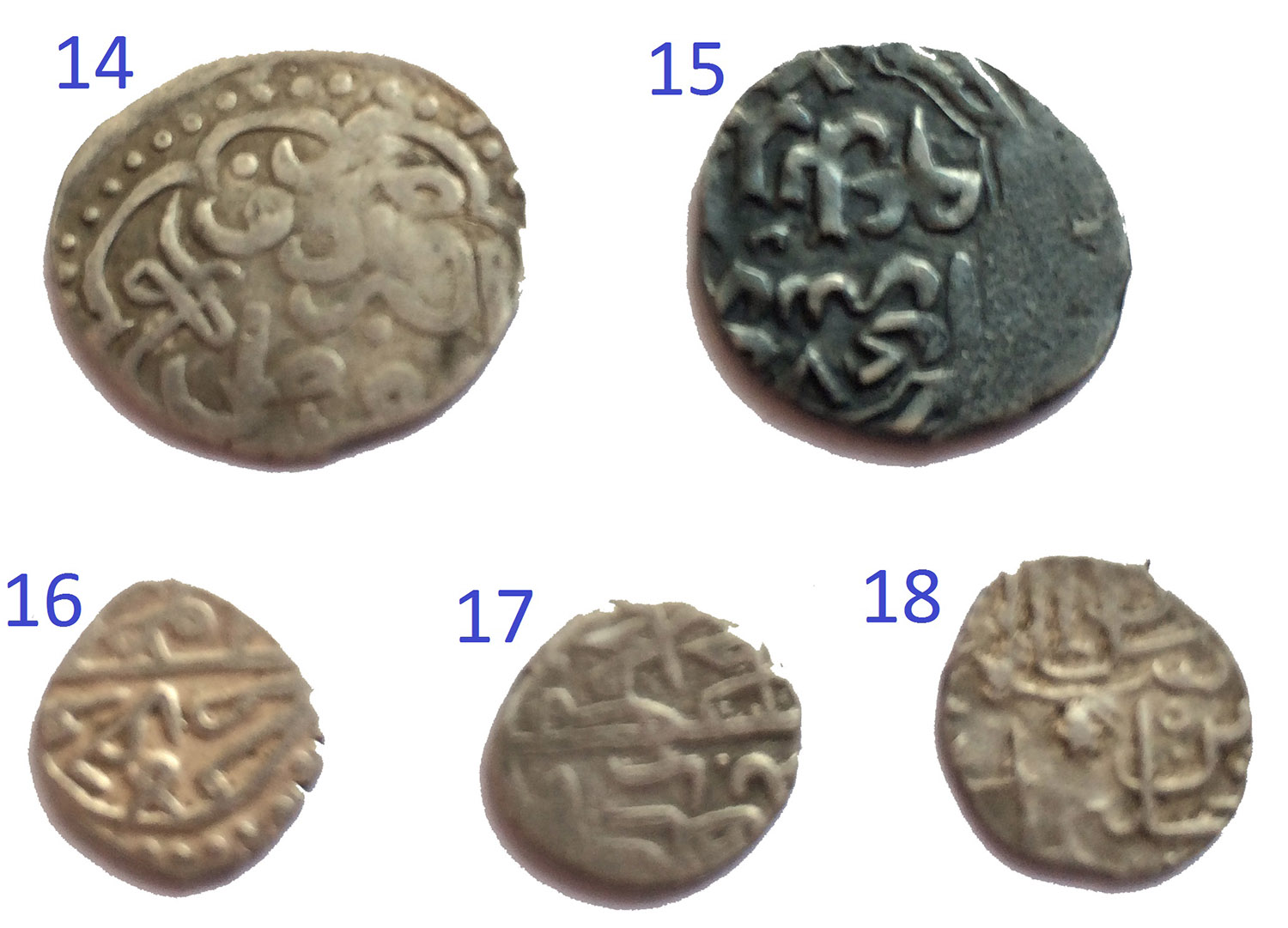 Прошу Вашей помощи в определении ордынских монет. Очень желательно с каталожными номерами - в идеале по Сагдеевой для серебра и по Пырсову для меди. Не уверен, что монеты 16-18 относятся к Орде. Также сразу приношу извинения за не вполне качественные фото, а также если где-то перевернул текст - по-арабски я не читаю. Касательно номера 22 - очень похожа на номер 32 по Пырсову (анонимный, не определены город и год, на аверсе видна тамга дома Бату, на реверсе остаток уйгуроязычной надписи, исполненной арабскими буквами: "Будь счастлив"), но я не уверен. Может у какого-то автора эта монета лучше описана? Заранее благодарю всех ответивших! Вложенные эскизы изображений -------------------- Если я выиграл Ваш лот - отпишитесь в личку!